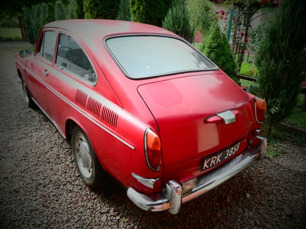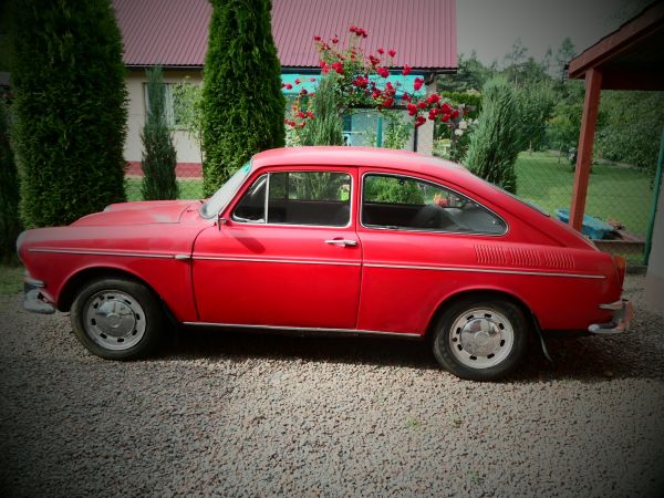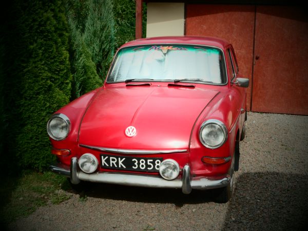 Volkswagen 1600 tl typ 3. Rok produkcji 1968, jeden właściciel, od początku w rodzinie (dziadek, następnie ojciec, teraz syn). Samochód zapala jeździ, przegląd aktualny do sierpnia 2015, wszystko działa. Jest sporo części zamiennych: drążki skrętne, gałki, klocki hamulcowe, przednie błotniki, elementy skrzyni biegów i silnika i inne. Silnik ma około 20 tyś. km po remoncie. Oceniam że jest ok 95% oryginalnych części. Oryginalna instrukcja obsługi, dokumenty Ojca co i kiedy wymieniał. Blacharka do kapitalnego remontu.